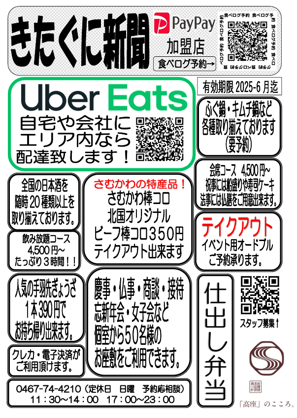 定休日 日曜日(法事・各種ご宴会のご予約承ります。)